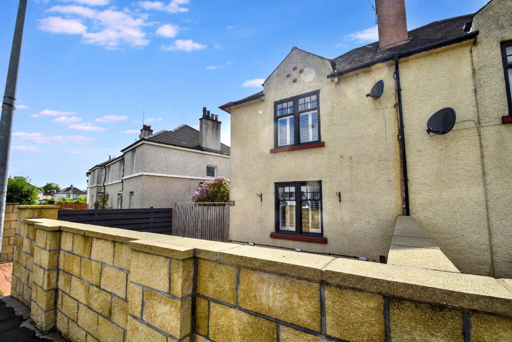 Immaculately presented 2-bedroom semi-detached home situated in the highly desirable leafy suburb of Mosspark on Glasgow’s Southside. Well maintained and refurbished by the current owner. GCH, D/G, Spacious enclosed gardens grounds to the rear and side, with mono-bloc drive to the front.