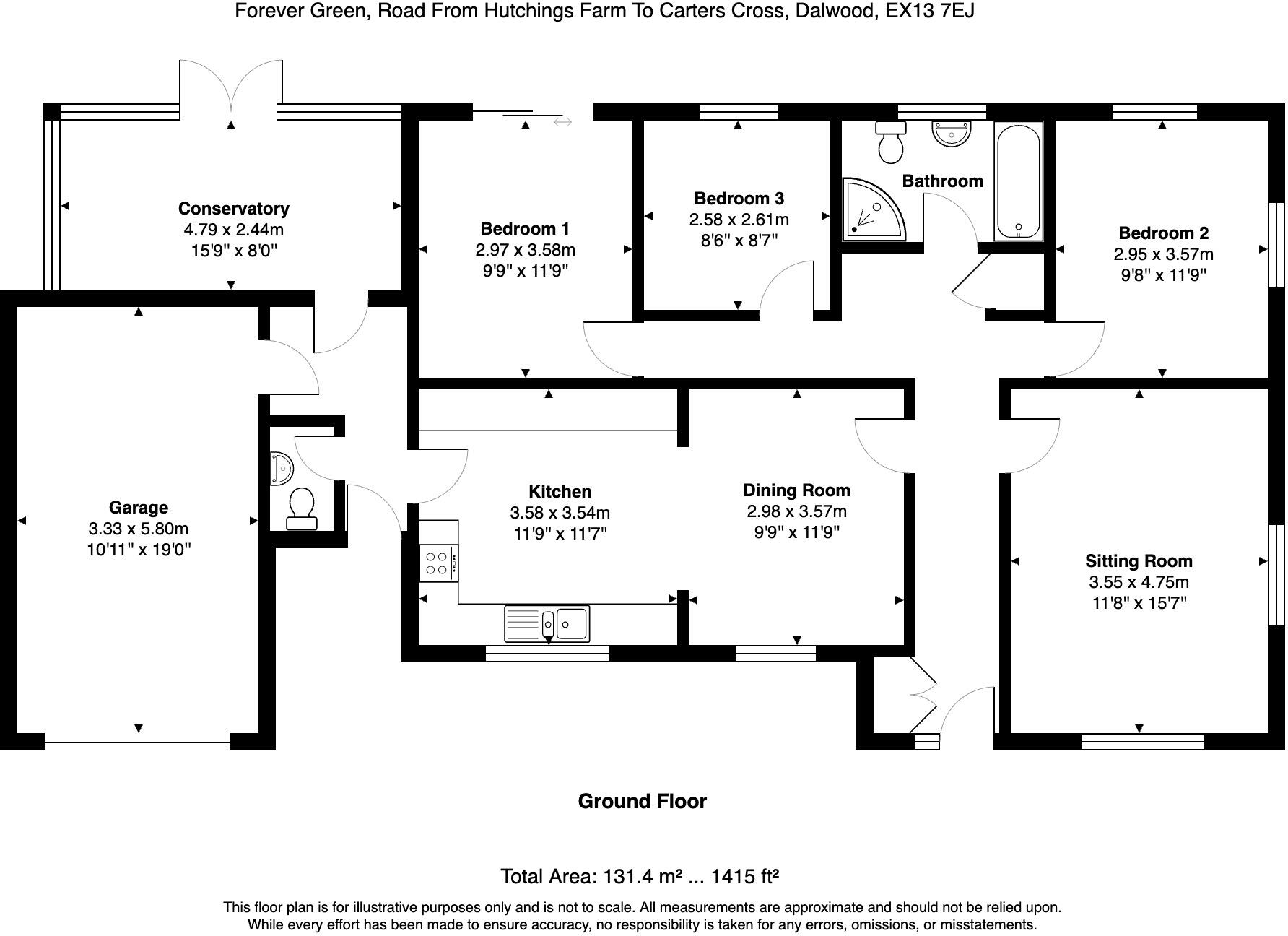 This is a three-bedroom bungalow located in Newbridges, Dalwood, Axminster, Devon. The property is situated in a rural location, close to the Blackdown Hills Area of Outstanding Natural Beauty. The property appears to be in good condition, with a modern kitchen and bathroom. However, some of the interior decor may be dated and in need of updating. The property has a large garden, a driveway, and a garage. The listing price is £550,000, which is slightly below the average price for a property in the area. Overall, this property offers a blend of rural charm and modern living, making it an attractive option for potential buyers seeking a peaceful retreat with convenient amenities.