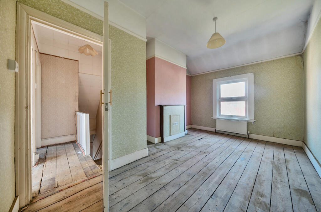 This property is a 4-bedroom semi-detached house located in Sydenham, Lewisham. It is in need of significant renovation, as evidenced by the photos. The property has a small garden. While the location is convenient with nearby schools and transportation links, the condition of the property significantly impacts its value. Compared to the average price per square foot in the area, the list price appears slightly high given the extensive renovations required.