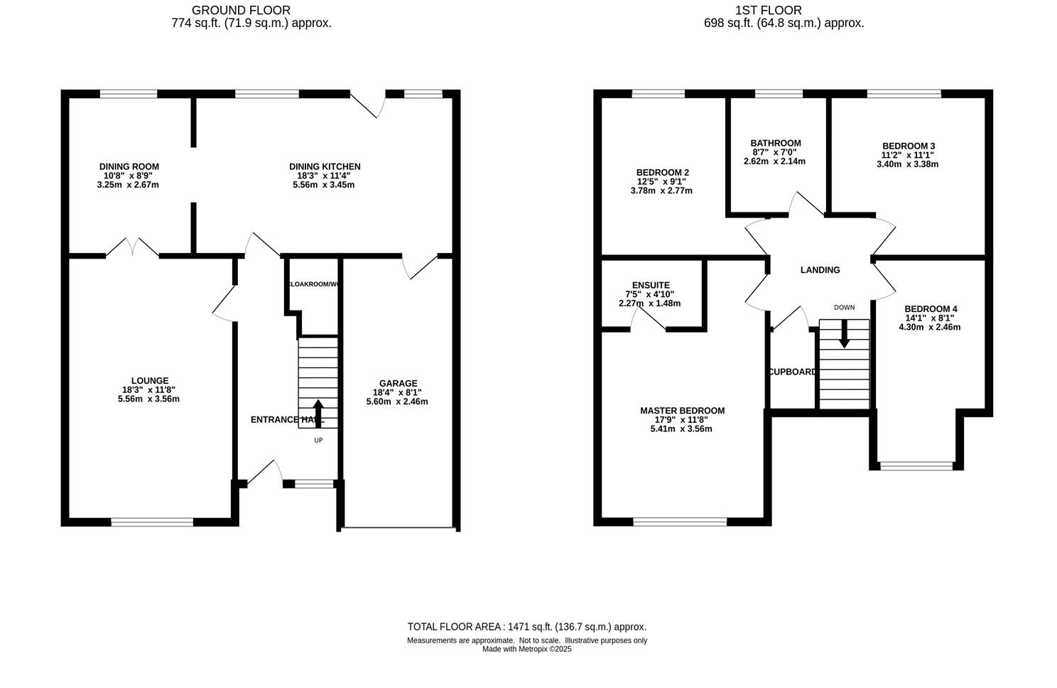 A spacious four double bedroom two bathroom detached family home with a large open plan dining kitchen, great cul de sac location and a south facing garden.