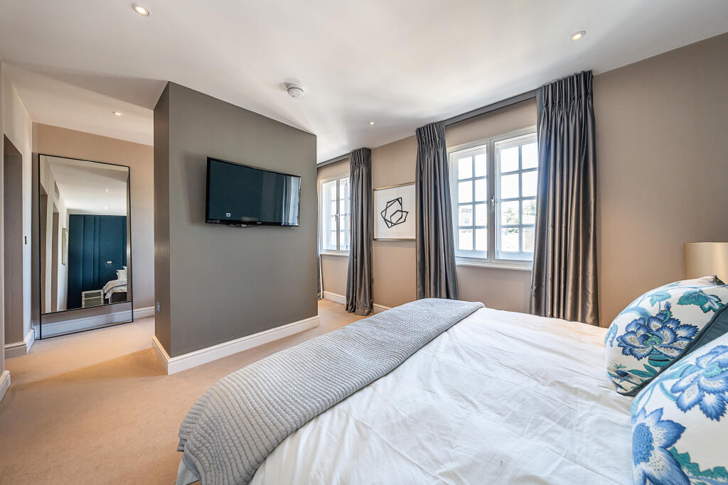 This incredible penthouse is set within a period conversion and occupies the top three floor (with lift) offering some of the most iconic London views over the Royal Mews and the gardens behind Buckingham Palace.