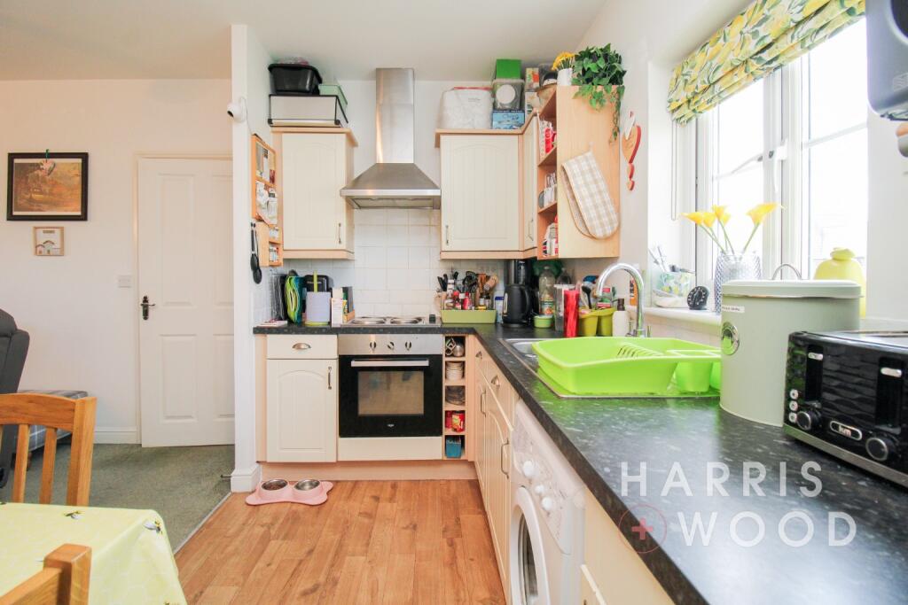 The property is a two-bedroom apartment located in Highwoods, Colchester, Essex. The list price is £160,000. The apartment appears to be in good condition based on the provided images. The kitchen and bathroom are modern and well-maintained. The living areas are clean and tidy, and there is no visible evidence of significant damage or disrepair. While the plot size is listed as 0.00 sqft, the exterior images show a communal green space, suggesting access to some outdoor area. However, this is not a private garden. Considering the average price of properties in the area is £319,444 and the average price per square foot is £322, the list price of £160,000 for this apartment is significantly below average. However, the lack of square footage data for the property makes a precise price comparison difficult. The smaller size compared to the average property in the area could account for the lower price. Further investigation into the specific size of the apartment would be needed for a more accurate price assessment. The location appears to be convenient, with several schools within a reasonable distance, including The Gilberd School (rated Outstanding by Ofsted). There are also several train stations within a few kilometers’ radius, providing good transport links.