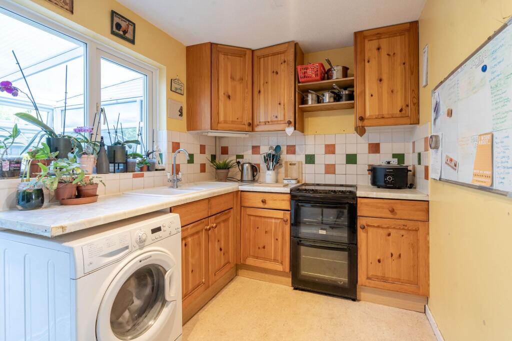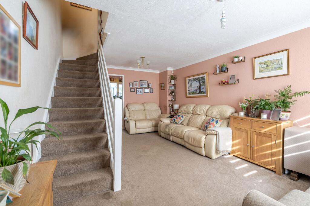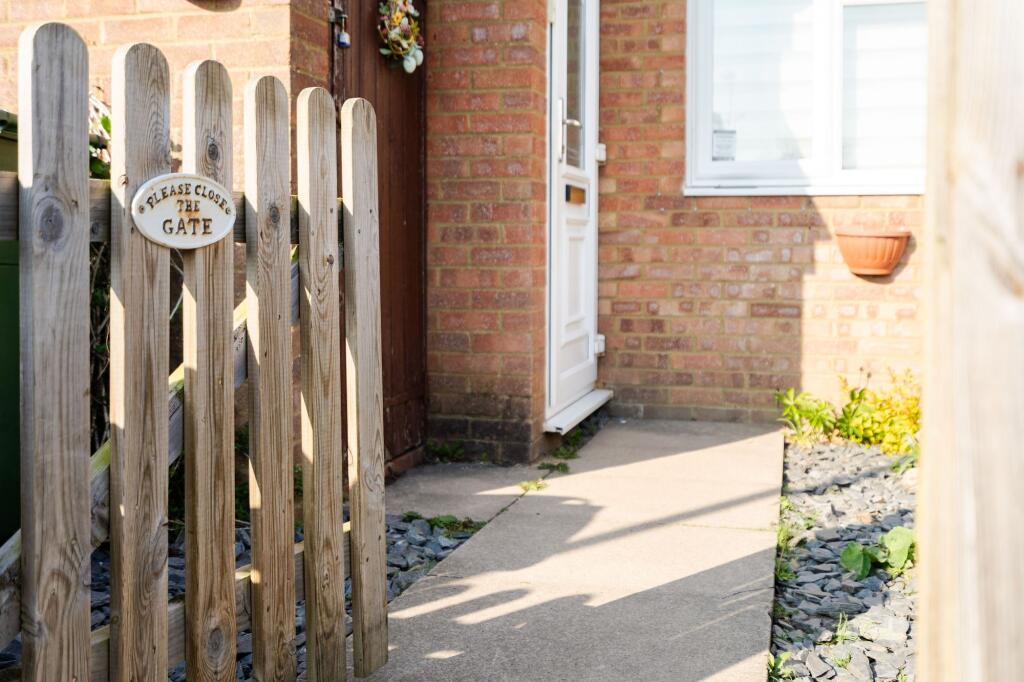 Two-bedroom terraced home with garage, porch, conservatory and low-maintenance garden. Short walk to Stoke Mandeville Hospital and School.