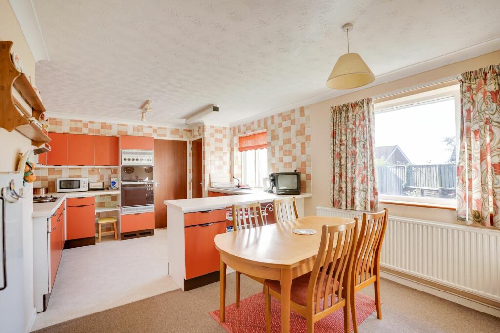This property is a detached bungalow located in Wickhambrook, Suffolk. The location benefits from being relatively close to Wickhambrook Primary Academy (0.23 KM). While the property itself shows its age, with dated interiors and decor as seen in the provided images, it is presented in a clean and well-maintained condition. The kitchen and bathroom, in particular, would benefit from modernization. The property includes a sizeable garden, adding to its appeal. Given the average house price in the area is £234,748 and the average price per sqft is £278, and this property is listed at £400,000, the price may be considered on the higher end, especially considering the need for some modernization. However, the larger plot size (1,244.70 sqft) compared to the area average could justify a higher price point.