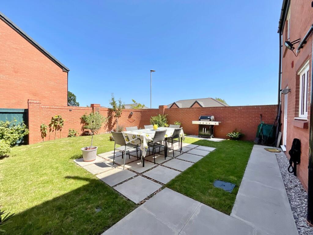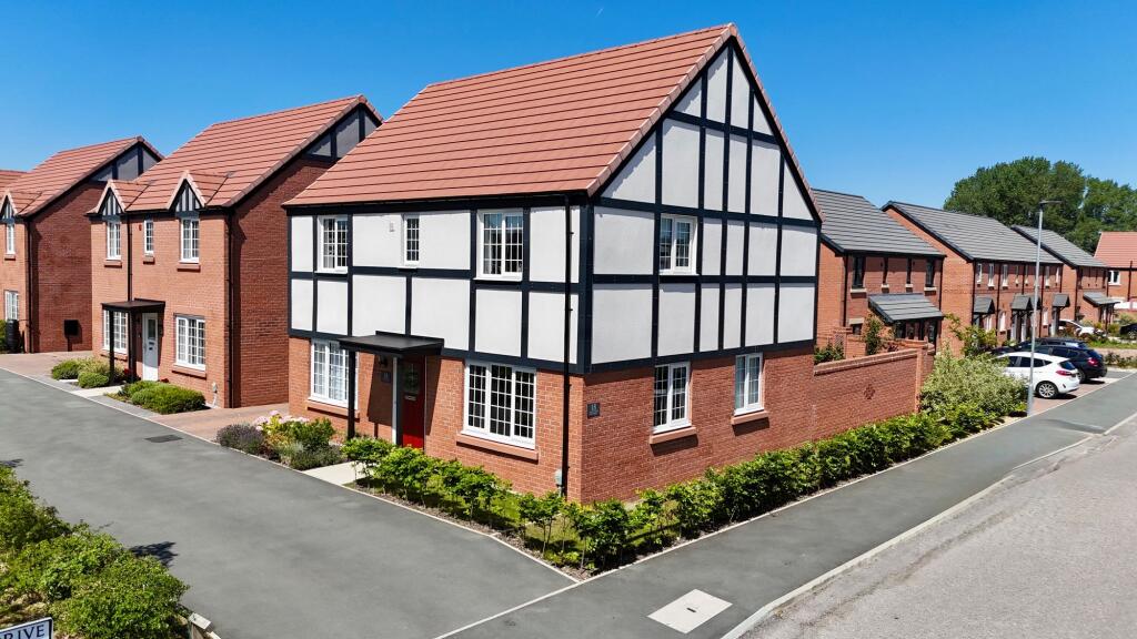 Family-friendly 4-bed detached home in Shavington Park. Open-plan kitchen, lounge, utility, garage, EV port. Private garden, footpath access, good amenities & eco-friendly (EPC B).