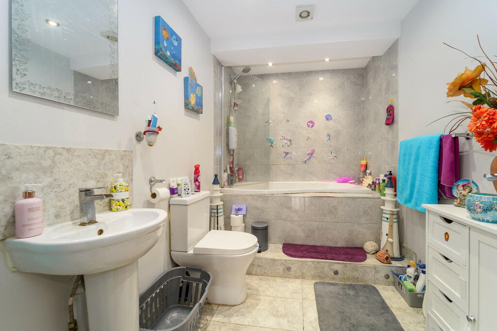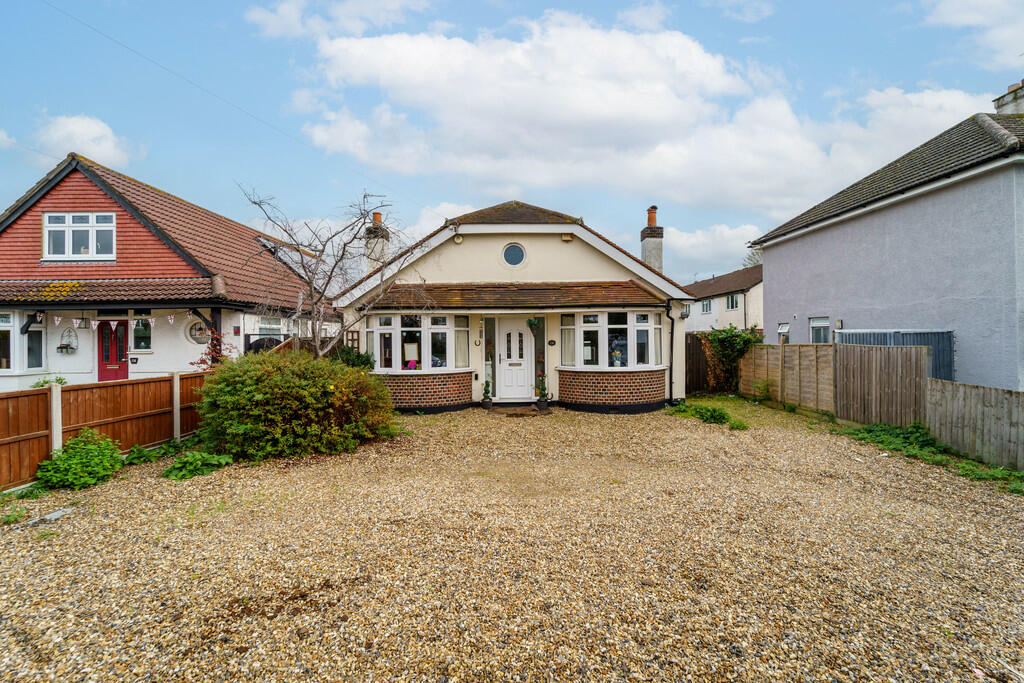 This 2-bedroom, 2-bathroom detached bungalow located on Staines Road in Staines-upon-Thames, Surrey, is listed at £500,000. The property offers approximately 974 square feet of living space and features a garden with a lawn and patio area. The internal images show the bungalow is in reasonable condition, with modern bathrooms, but could potentially benefit from some interior refurbishment and redecoration to suit future owners. The kitchen is modern and functional with access to the garden. The property’s proximity to Staines town centre, mainline train station, and local amenities is a major plus. Good Ofsted rated schools are also conveniently situated nearby making this a family friendly area. The price appears to align with other properties in the area, representing a fair value in a highly sought-after location. Potential buyers should take the time to carefully review the condition of the property and ensure it meets their needs and standards before making an offer.
