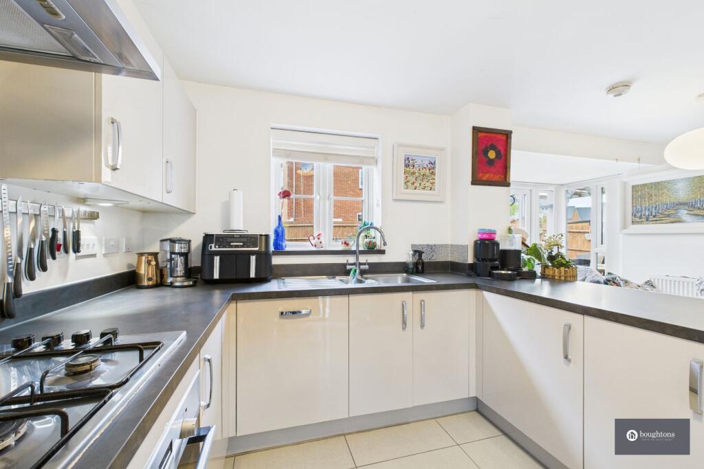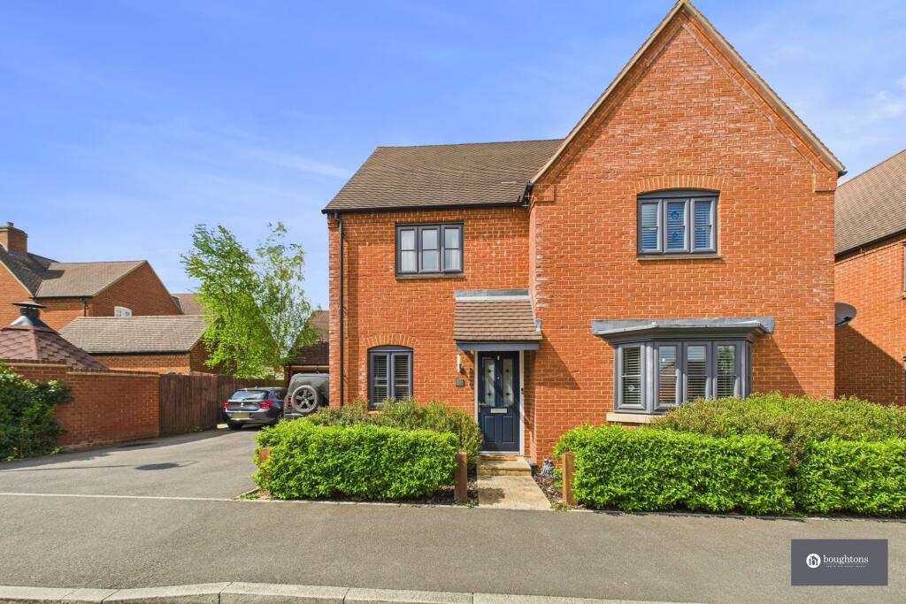 A detached family home with modern features, four double bedrooms, EPC B, spacious living areas, modern kitchen, home office, rear garden, two-car driveway, near schools and amenities.