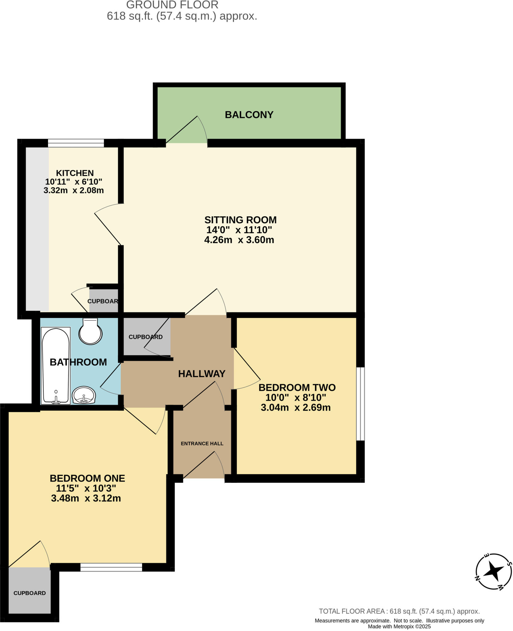 Ground floor 618sqft two bedroom central Oldfield Park apartment with balcony and private off street parking space.