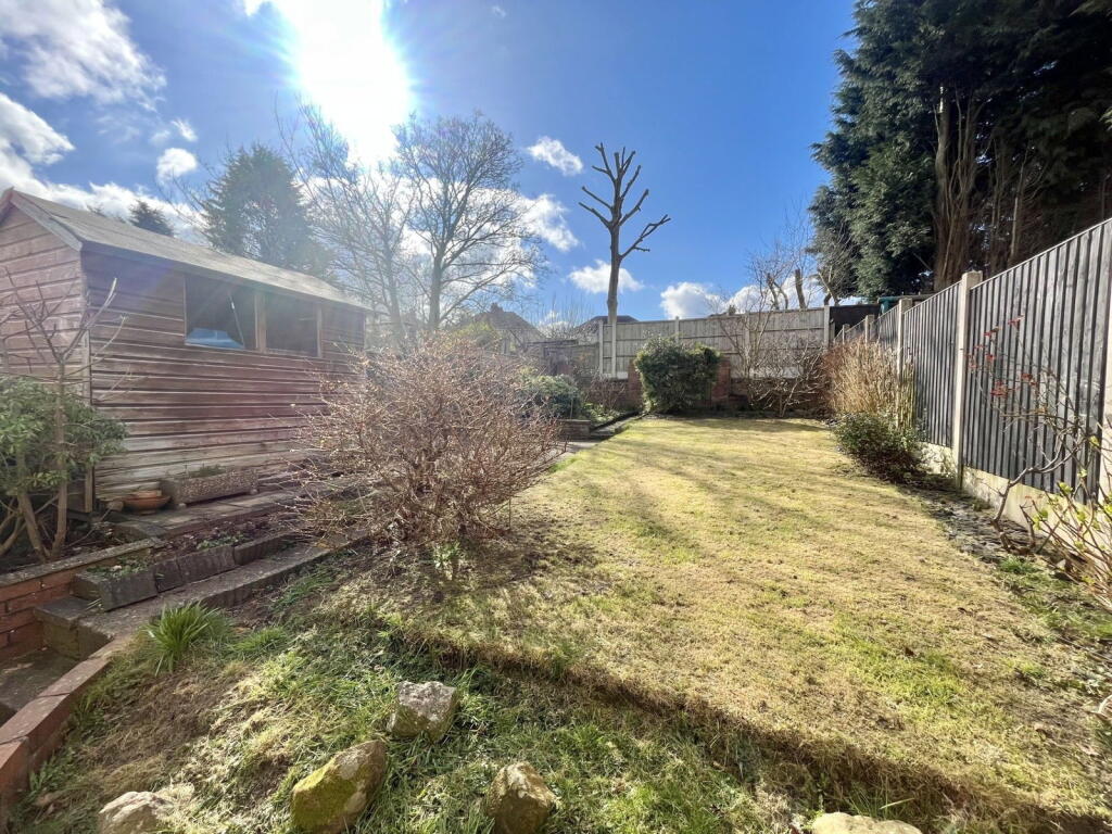 The property appears to be in reasonable condition. The interior photos show a recently updated kitchen and bathroom. The decor is modern, and the property seems well-maintained, although personal tastes may vary. There is no obvious evidence of significant repair or renovation needs. The garden is of a modest size, with a shed and paved areas. While not extensive, it provides some outdoor space.