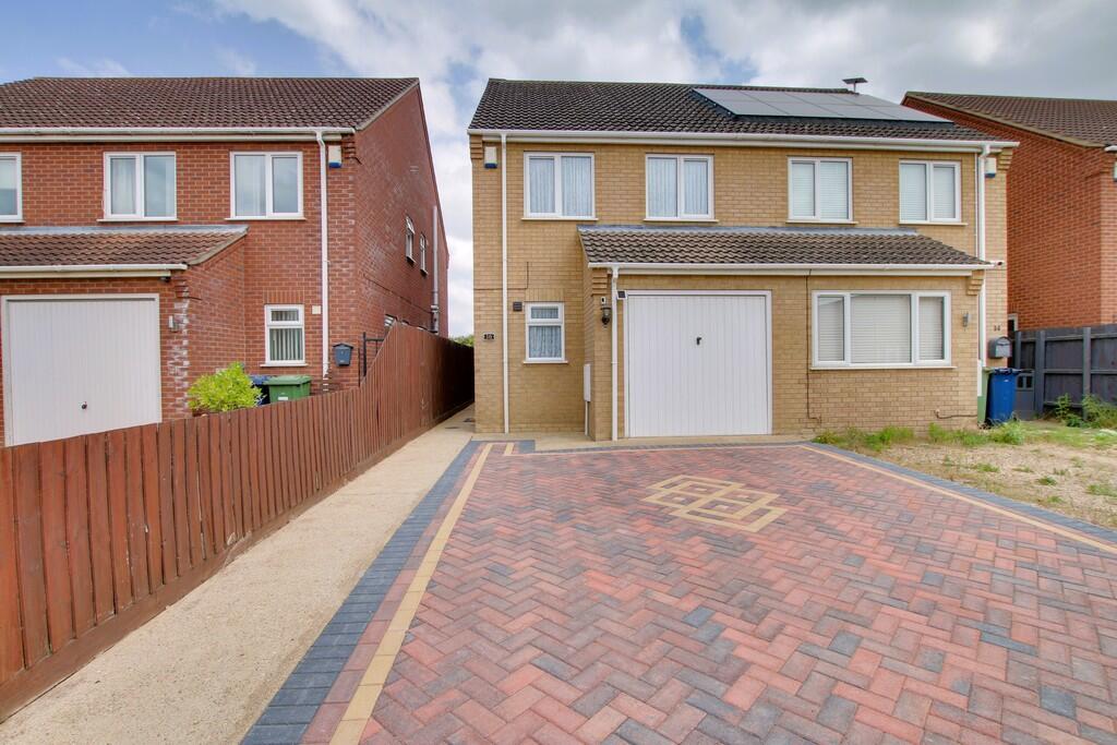 Simply immaculate inside and out! This semi detached home boasts refitted kitchen with appliances, lounge opening onto the garden, ground floor WC, three generous bedrooms and fully tiled four piece bathroom. Outside there is ample parking, garage and enclosed rear garden overlooking fields. E...