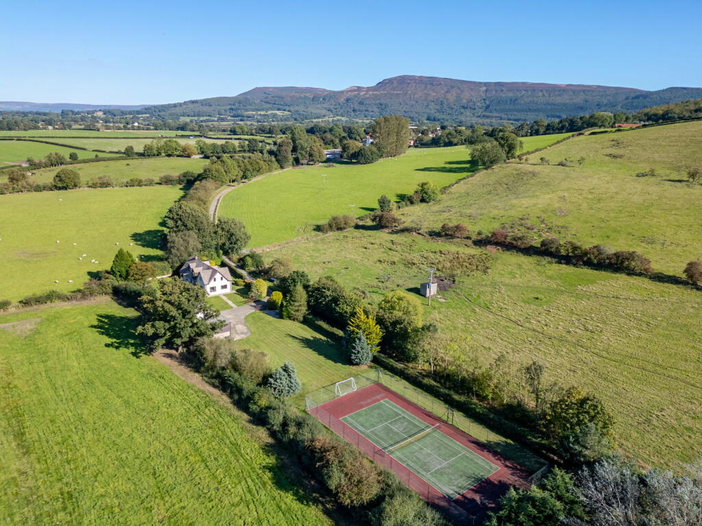 This five-bedroom detached house in Faceby, North Yorkshire presents a compelling proposition for buyers seeking a tranquil yet substantial family home. The property boasts a modern and well-maintained interior, with a contemporary kitchen and multiple living areas. High-quality fixtures and finishes are evident throughout. A key feature is the extensive land surrounding the property, providing a significant degree of privacy and ample outdoor space, including a tennis court which is a valuable amenity. The location is rural, offering a peaceful lifestyle, though potential buyers should be aware of the distance from major amenities and the lack of nearby public transportation. While the list price appears reasonably aligned with the market value of similar homes where data is provided, a comprehensive comparative market analysis, considering land value, would be needed to determine its precise value. The property is well-suited for families or individuals who desire both comfort and a private outdoor lifestyle. The lack of readily available comparable property price per square foot data makes a definitive price evaluation challenging; however, the overall property value proposition is strong.