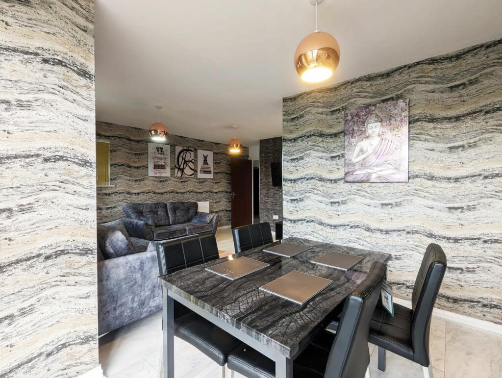 This two-bedroom apartment in Fallowfield, Manchester, presents a modern and well-maintained living space. The interior photos showcase a recent renovation or refurbishment, featuring a contemporary style with what appears to be high-quality finishes and modern appliances. The open-plan living area combines the kitchen, dining, and lounge, creating a spacious feel. Both bedrooms are equipped with en-suite or close proximity to a well-presented bathroom. The location in Fallowfield offers proximity to Manchester city centre, local amenities, and several schools, which can be a significant attraction for families or students.