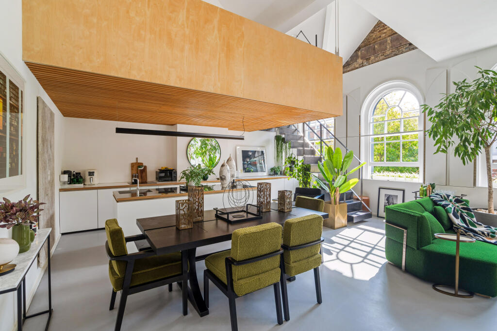 This property is a unique and stylish conversion of a 19th-century church located in Islington, London. The conversion has created a spacious and modern home spanning approximately 1,296 sq ft, featuring two bedrooms and one bathroom. The interiors are high-end, featuring a modern kitchen and open-plan living space that skillfully blends contemporary design with the building’s original character. Large arched windows and high ceilings add to the sense of space and light. The property benefits from a quiet location, near good schools and transport links, although it is important to note the absence of any external garden. The price reflects the unique nature and high-quality finish of the property, but comparable properties would need additional analysis to confirm market pricing accuracy. The lack of garden is a notable consideration. This property would appeal to buyers seeking a distinctive home in a desirable area who value high-quality finishes and contemporary living but do not need a garden. Additional analysis of local property transactions would provide a clearer picture of the market price justification. While the available information is insufficient to give a definitive opinion, this property shows significant promise based on image and provided data.