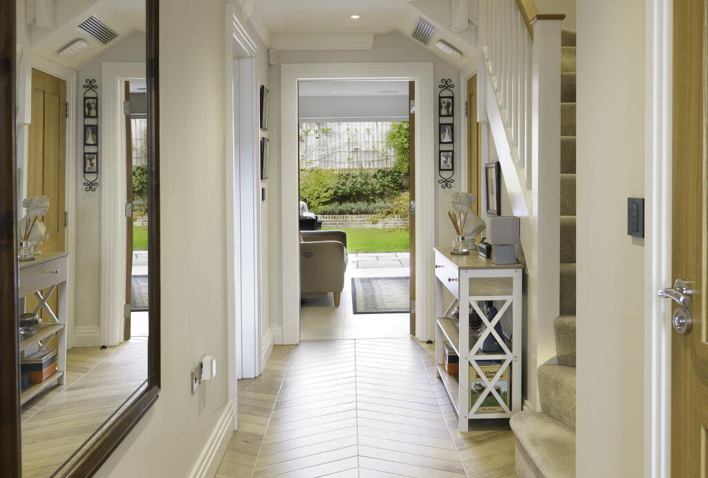 A premium home with designer features and smart tech.Comprising a Lutron lighting system,integrated Sonos sound system,CCTV,a fully integrated security system,a Ring doorbell and underfloor heating. With a private driveway and a large garage, set in an exceptional development of 12 homes.