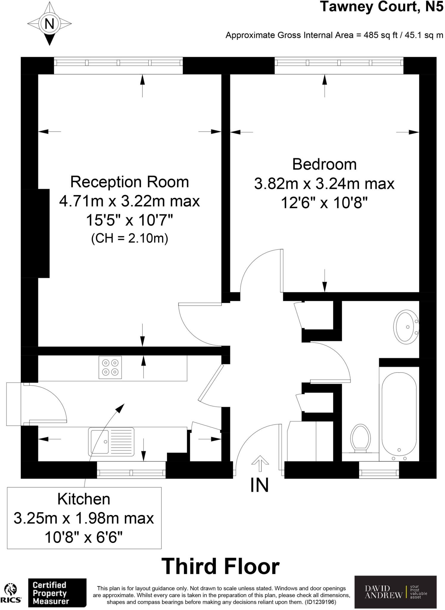 This is a one-bedroom flat located in Highbury West, Islington. The property is in a good location, close to schools, transport, and green spaces. The condition is fair, with some aspects needing updating. The asking price of £400,000 seems reasonable given the location and size of the property. The flat is approximately 485.45 sqft. The flat benefits from being close to local amenities and transport links.