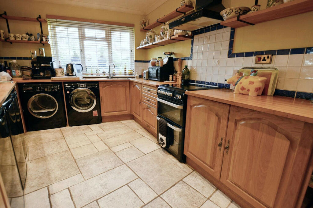 The images reveal a property that has been well-maintained, but shows some cosmetic updating could enhance appeal to potential buyers. The modern, white-tiled bathroom contrasts with what appears to be a slightly dated kitchen, for example. Overall the house seems comfortably furnished. The property also contains two lovely gardens.