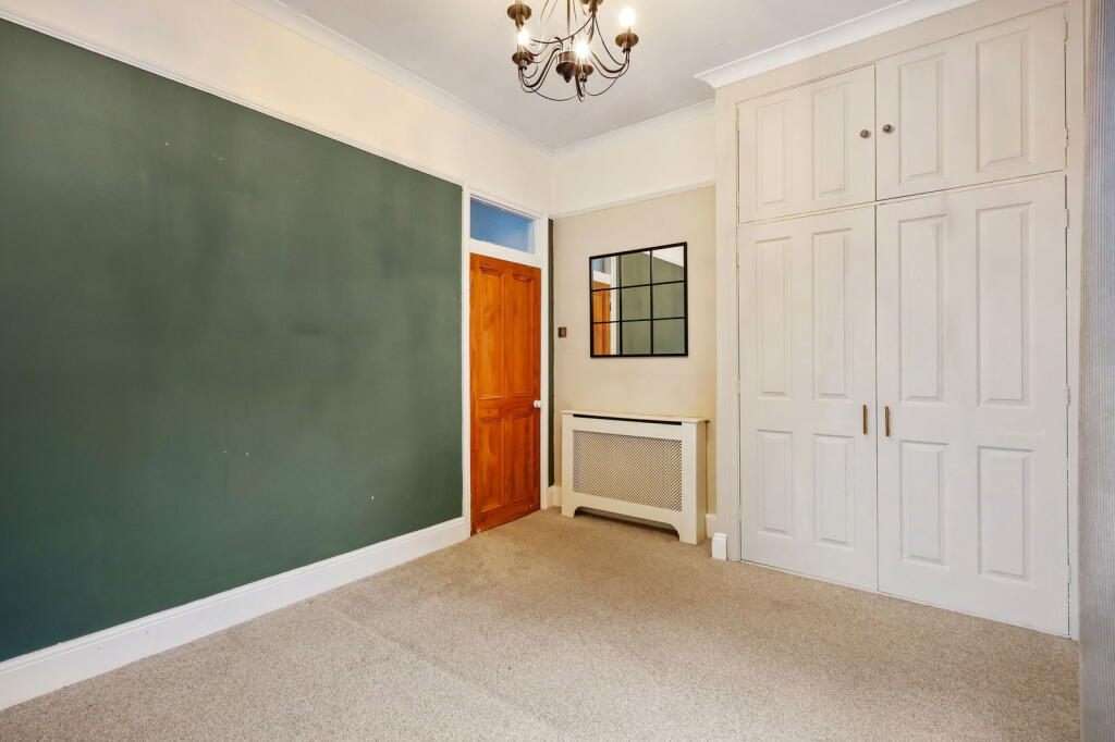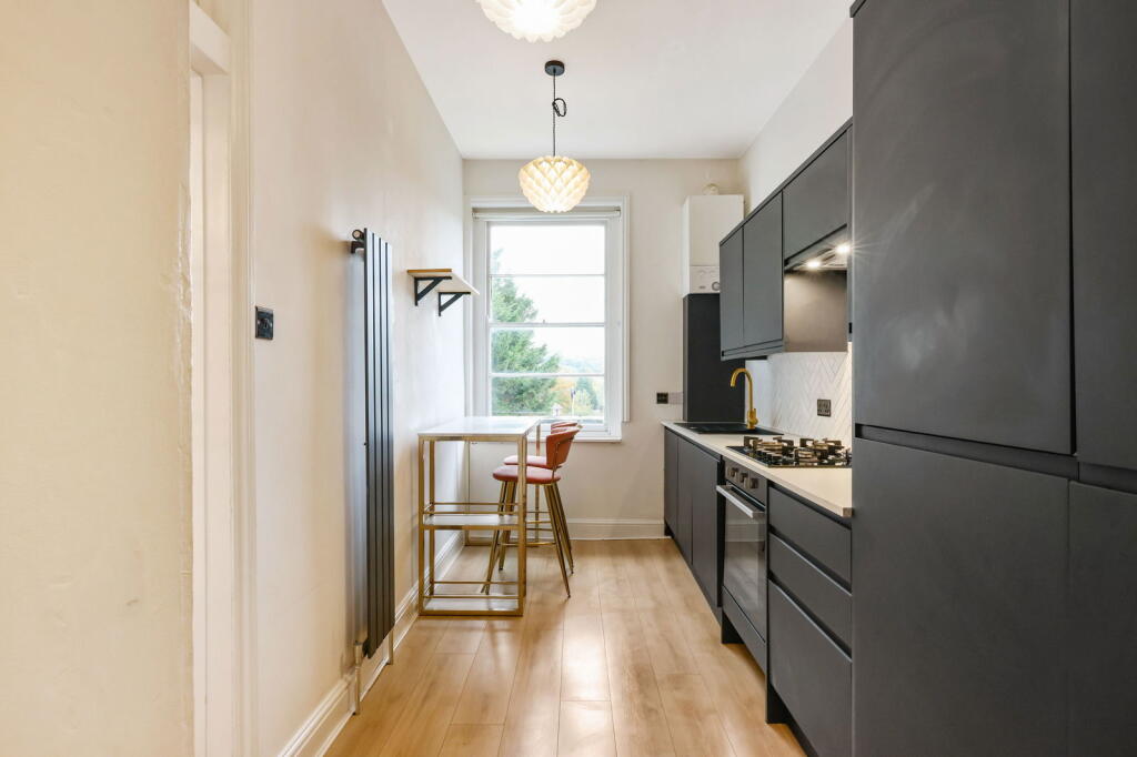 This is a one-bedroom apartment located in Charlton Kings, Cheltenham. The property is part of a larger period building and offers access to communal gardens. The interior features a modern kitchen and bathroom, while the living spaces may require some cosmetic updates. The location is convenient for local schools and amenities, and the price appears reasonable compared to other properties in the area.