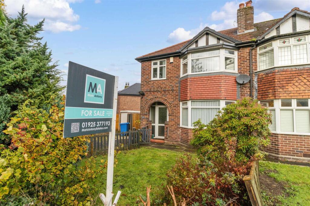 No onward chain. Three-bed semi with two receptions, extended kitchen, garage, parking, private garden. Close to Stockton Heath Village, schools, and countryside walks. Extension potential.