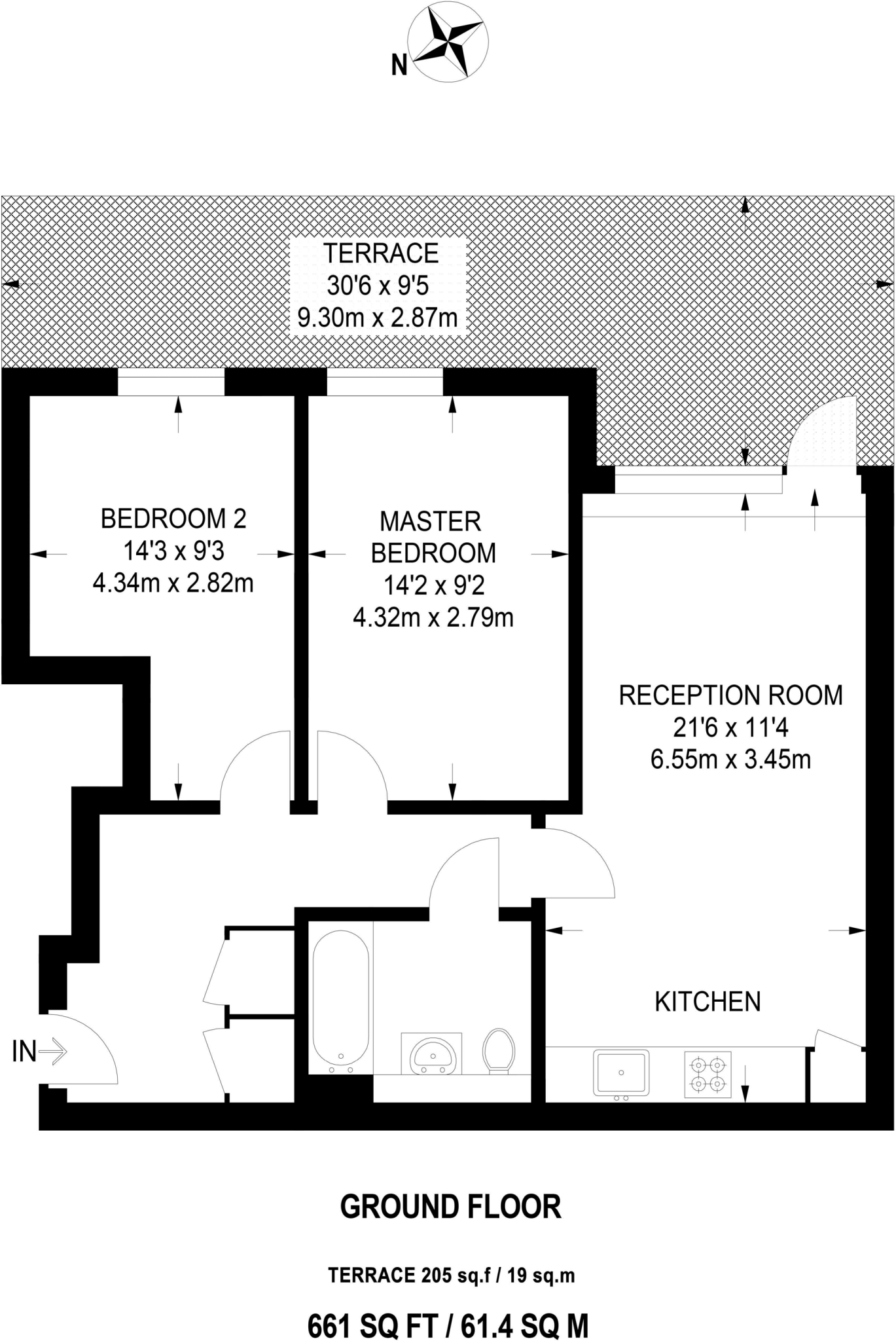 SHORT LET. A stylish two bedroom flat located within a secure modern development, boasting a generous reception room with a fully integrated open-plan kitchen and a private decked terrace.