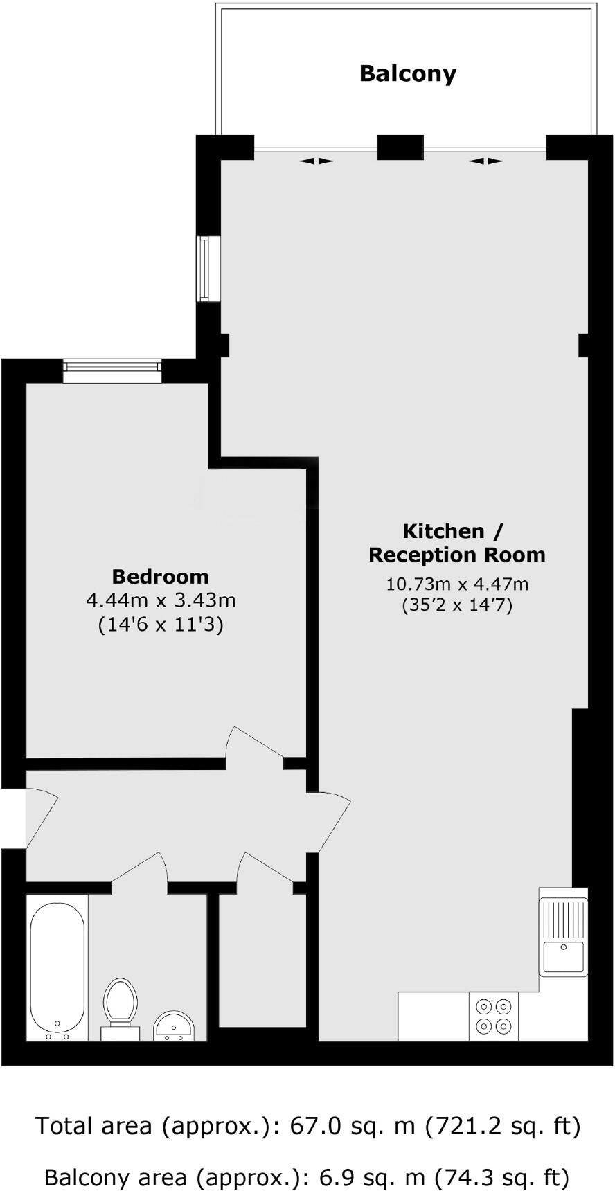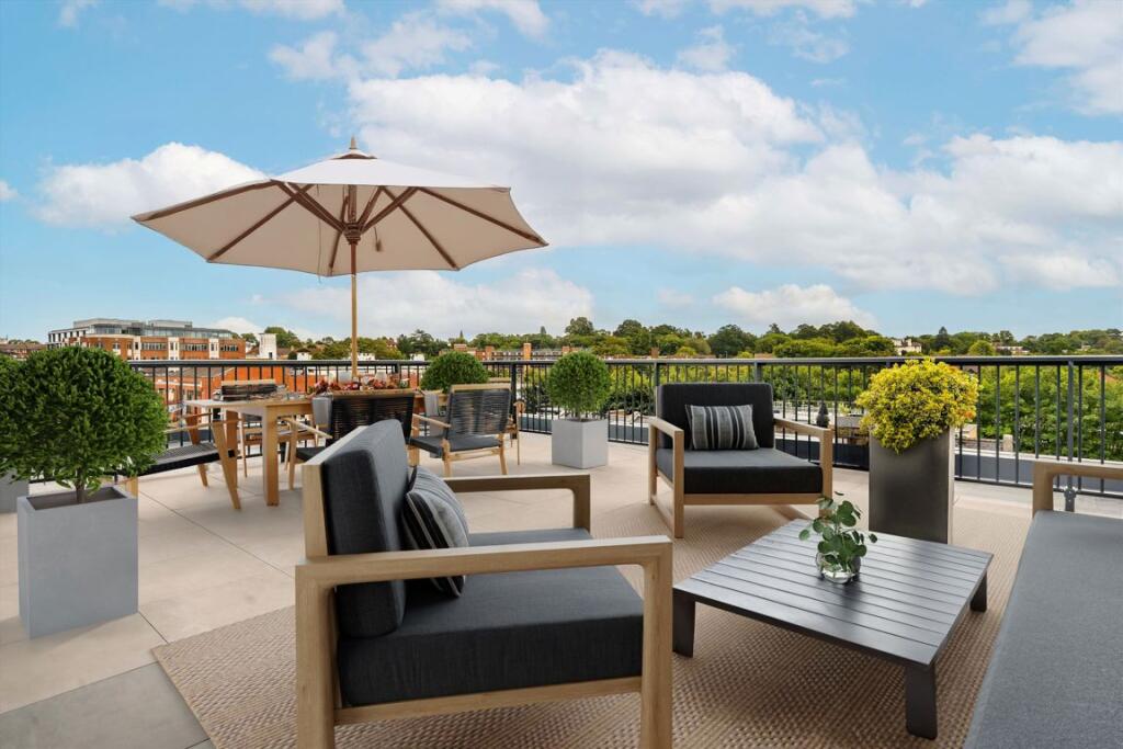 This is a modern one-bedroom flat located on St. Andrew’s Road in Surbiton. The property is in excellent condition, with modern fixtures and fittings throughout. It benefits from a desirable location close to local amenities, shops, transportation links, and schools. While the property has no garden, it does have a balcony and access to a shared roof terrace. The price is above the average for the area, but this may be justified by the property’s condition and location. The flat is approximately 721 square feet.