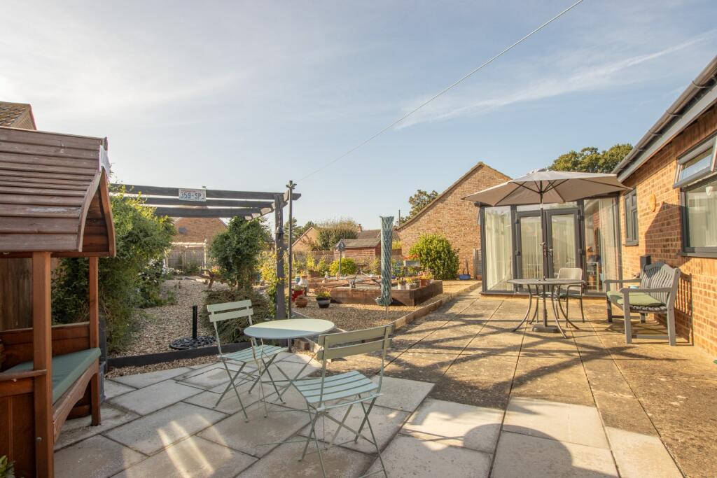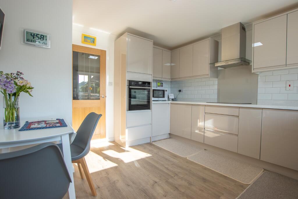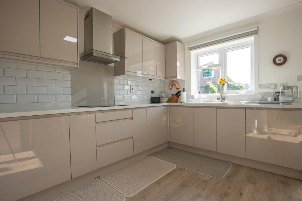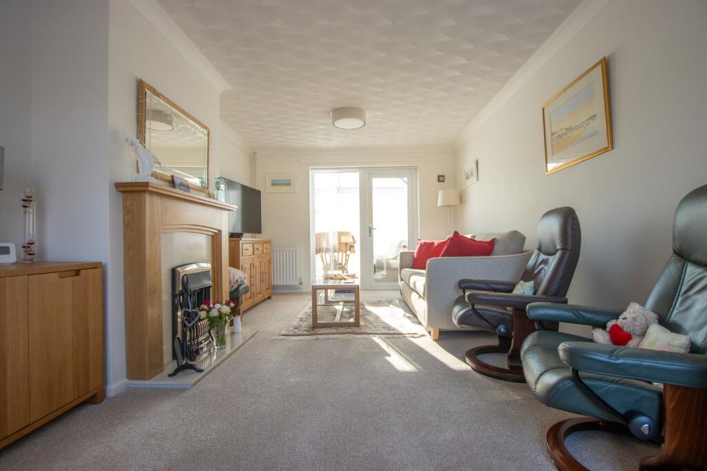 A beautifully presented & extensively refurbished bungalow, situated on a quiet cul-de-sac just a 10-minute walk form the beach. Landscaped gardens, garage & private driveway.