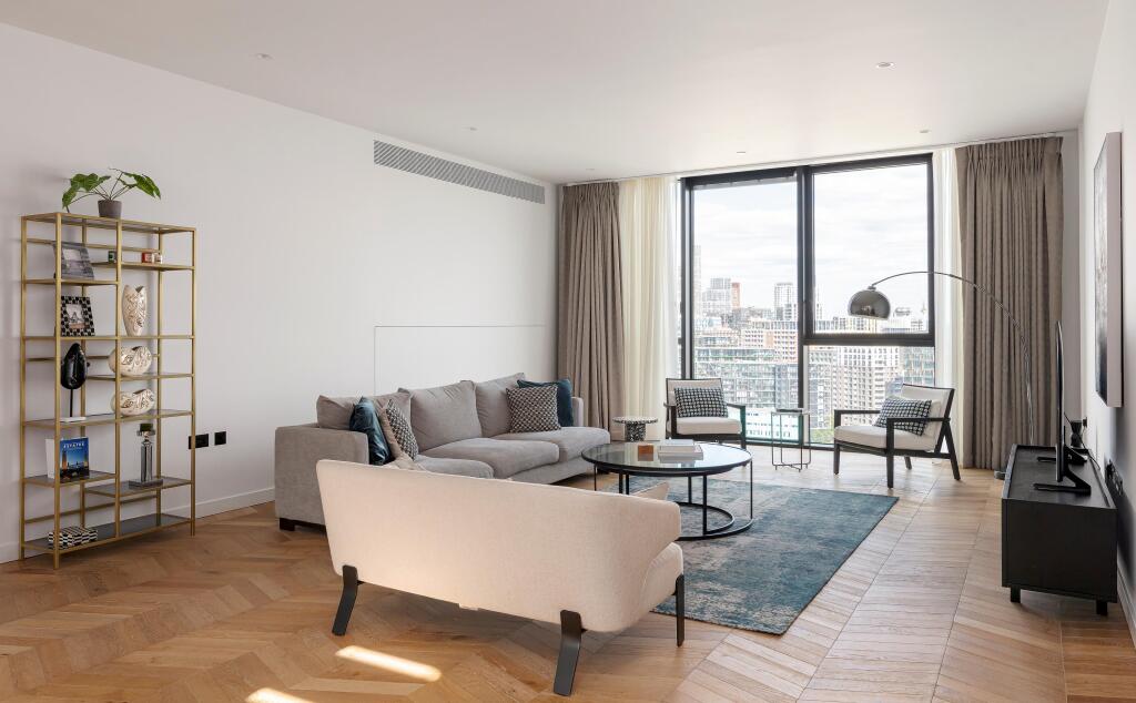 Exceptional duplex sky villa apartment with roof terrace and three double bedrooms. Set across the 11th and 12th floors of the iconic Boiler House, this unique three-bedroom duplex offers expansive living space, a private terrace, and a design-led interior in one of London’s most exciting neighb...