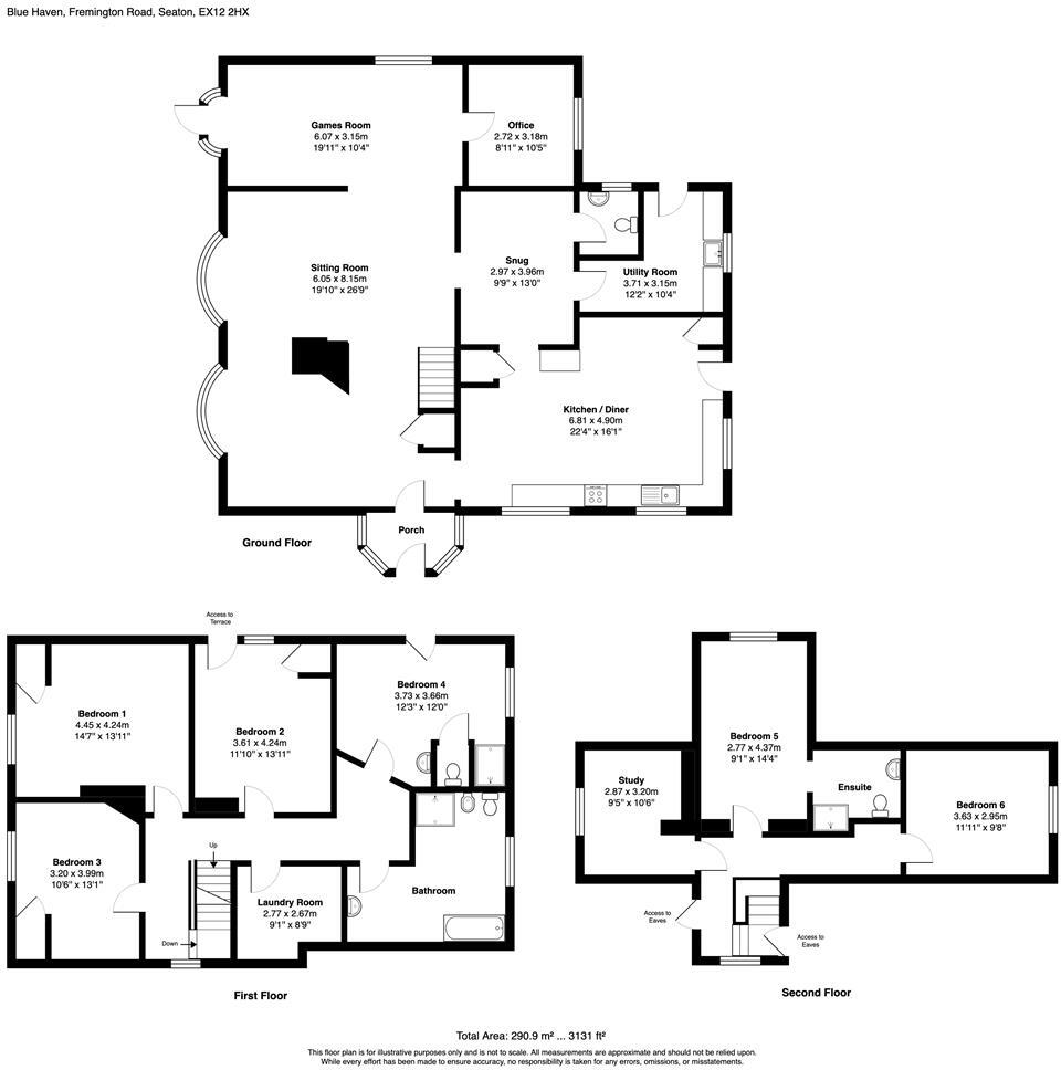 Generous five/six bedroom detached home occupies a corner plot with sea views and a private south-facing garden featuring a large swimming pool. Over 3,000 sqft of accommodation and no onward chain.