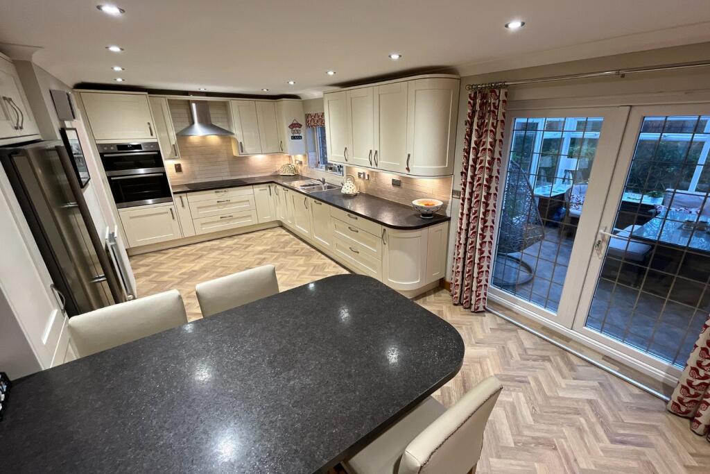 This four-bedroom, three-bathroom detached house in The Parklands, Cockermouth offers a comfortable and well-presented family home. The property benefits from a modern fitted kitchen and updated bathrooms, visible in the high-quality photographs provided. The layout appears spacious and functional, with multiple living areas, including a conservatory which extends the living space considerably. The external landscaping is relatively well-maintained and appears to offer ample outdoor space for garden furniture or children’s play, though exact dimensions are unavailable. There is also an attached garage which offers plenty of storage or off road parking space for vehicles.