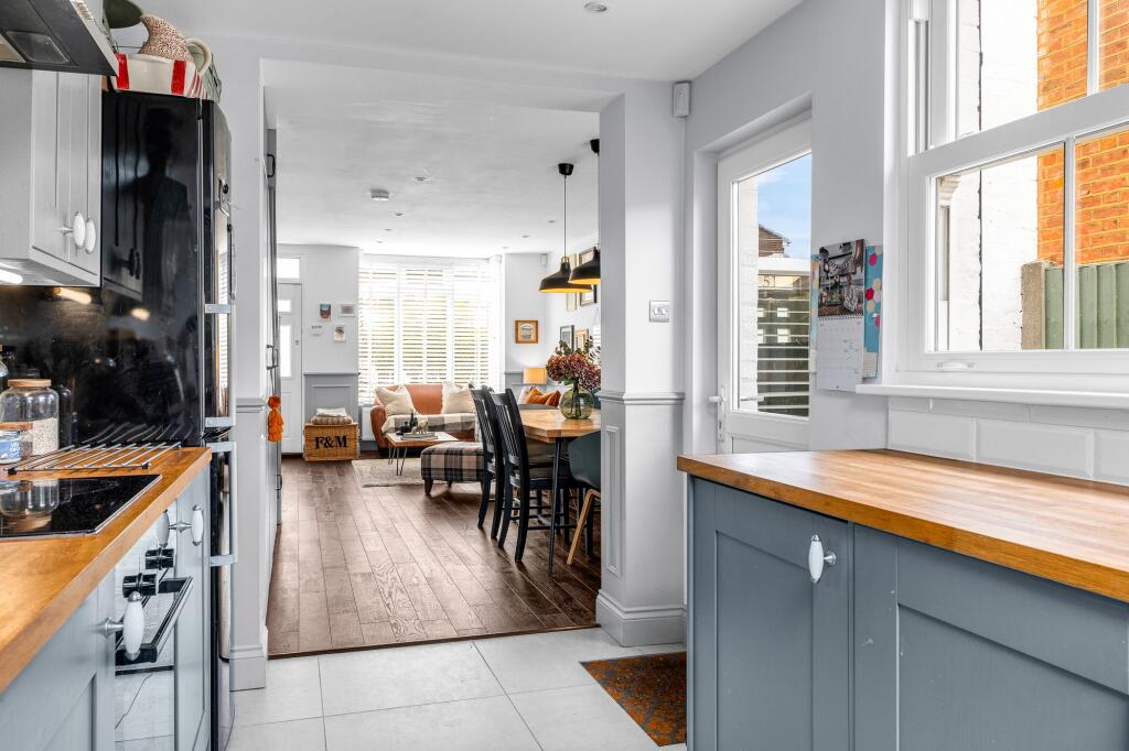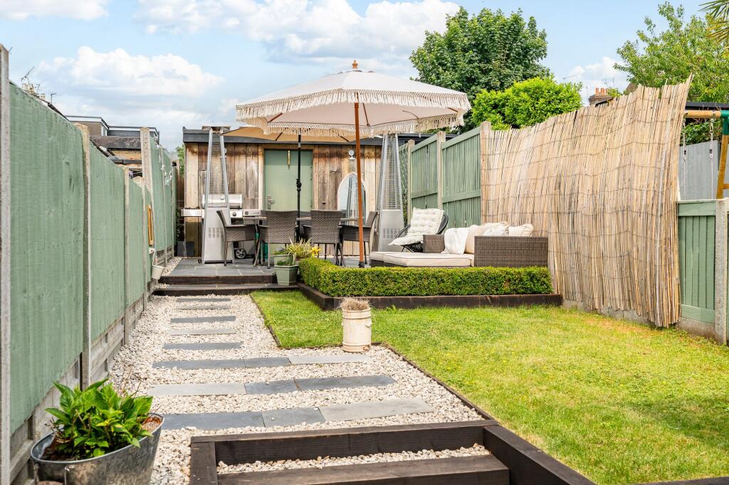 Extended 3-bed Victorian cottage in Ware with open-plan living, fitted kitchen, landscaped gardens, main bedroom with en suite. Close to town centre, shops, bars, restaurants, and train station.