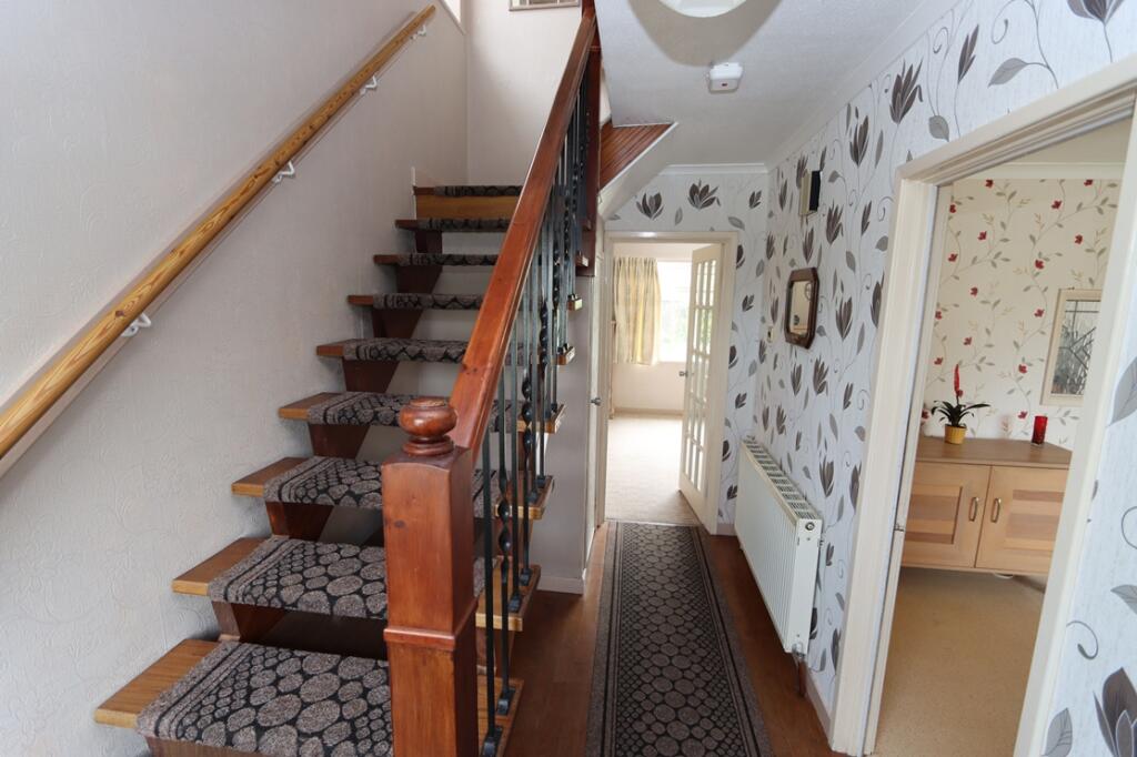 WELL SITUATED 3 BEDROOMED DETACHED LINK HOUSE. This property was built by Brannen around 1968. It is built to a unique plan and has many attractive features. The property benefits of a sunny south facing rear garden measuring approx. 44ft long, uPVC double glazing & gas central heating.