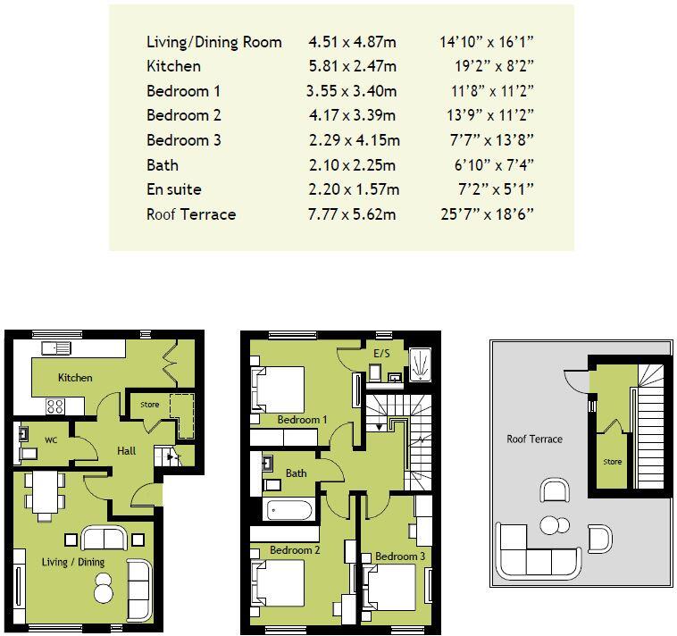 Brand new 3 bed 2 bath duplex with private roof terrace set within a secure gated development