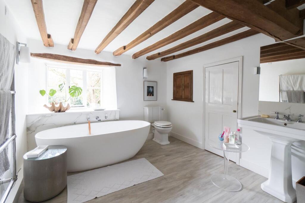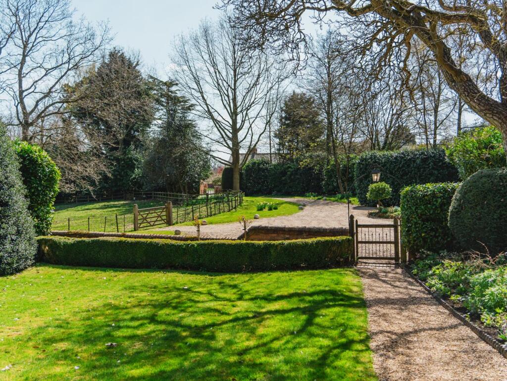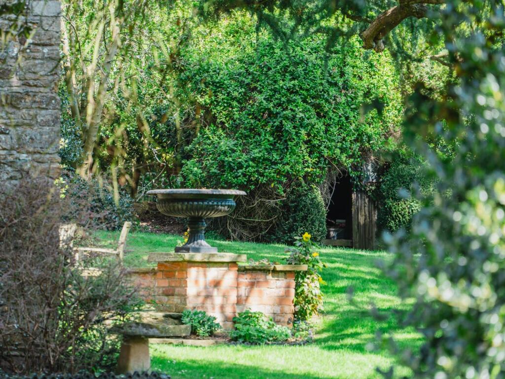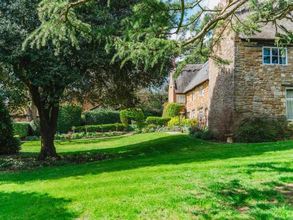 The property is a charming detached house located in Clipston, a village in West Northamptonshire. The images show a property that appears to be well-maintained and renovated, retaining many period features while incorporating modern amenities. The extensive gardens are a key feature, offering significant outdoor space.