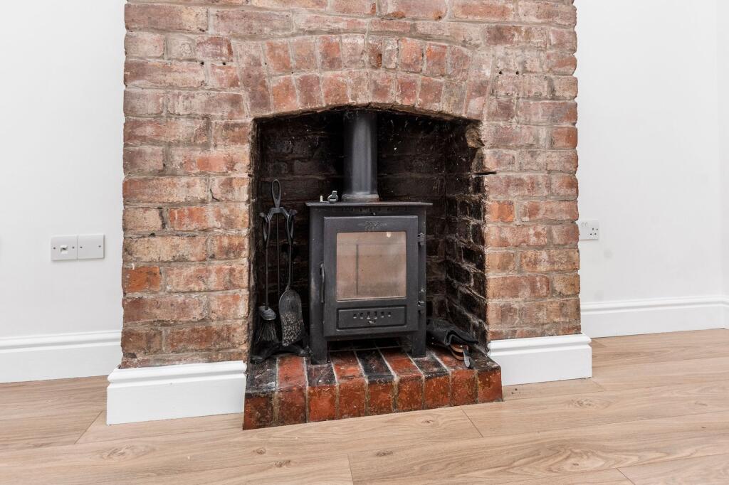 Recently renovated 2-bed end-of-terrace house in sought-after area with loft, open-plan kitchen diner, double glazing, gas heating, log burner, generous gardens, parking, no chain. Tranquil oasis with abundant green space for relaxing or entertaining outdoors.