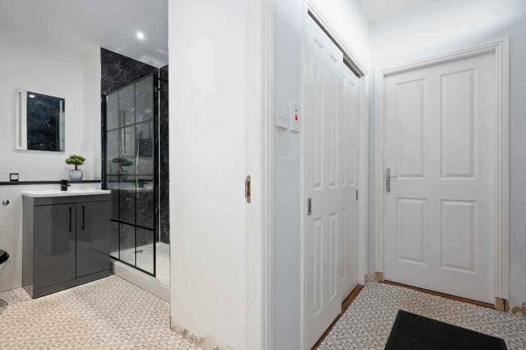The property is a 1-bedroom, 1-bathroom apartment situated in Bathgate, West Lothian. The listing price is £190,000. The images show a modern, well-presented interior with a contemporary kitchen and bathroom. The apartment appears to be in excellent condition, with modern fixtures and fittings. The finishes and overall presentation suggest a recent renovation or high-quality build. The location is within walking distance of Bathgate train station, providing convenient access to public transportation. While there is no information on nearby schools, the proximity to the train station suggests reasonable access to amenities and services. The surrounding area appears to be residential, with a mix of housing styles. The images show a communal green space and a well-maintained exterior. There is limited information on the plot size, therefore a definitive assessment of the land cannot be made. However, the images reveal a small, private courtyard area, offering some outdoor space. Considering the property’s apparent excellent condition, convenient location near a train station, and the small amount of private outdoor space, the list price of £190,000 requires further analysis. Nearby comparable properties are significantly more expensive, ranging from £175,000 to £395,000. However, these properties are larger, and the size of the subject property is unknown. Therefore, a conclusive assessment of the price’s reasonableness relative to the market is not possible.