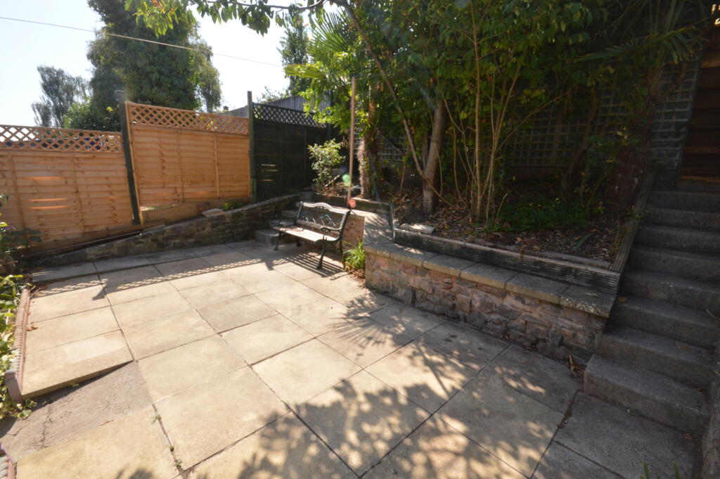This terraced property is located in Exwick, Exeter. The property offers three bedrooms and one bathroom, with a total square footage of 712.14. The location benefits from close proximity to several schools and Exeter St David’s train station. The property includes a garden, which appears to be tiered with a patio area. The asking price is £167,500, which is below the average property price in the area. Based on the images, the property appears to be in need of some modernisation and renovation.