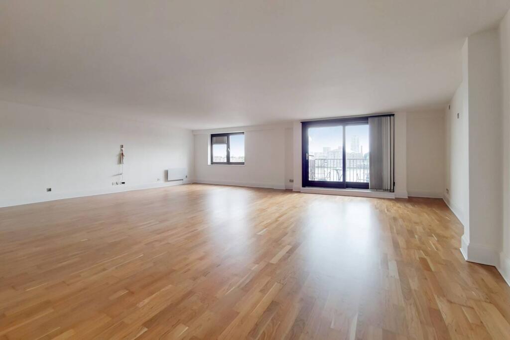LONG LET. With fantastic uniterrupted views across the river Thames towards Canary Wharf, this luxurious two bedroom flat benefits from a vast open-plan living/entertaining space, private balcony, lift and porter.