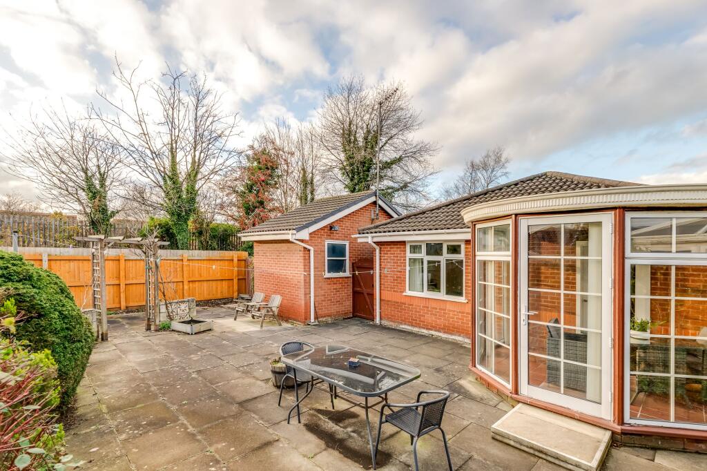 Spacious three-bed detached bungalow with modern kitchen, bright lounge, conservatory, low-maintenance garden, garage, driveway, and excellent road links. Move-in ready in a peaceful setting.