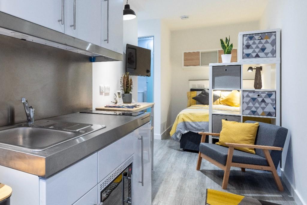 Only 18 months old! A luxury self-contained ground floor studio flat, fully furnished and finished to a high standard with security gates and entry-phone system. FURNISHED. AVAILABLE IMMEDIATELY! Single occupants only. No pets, no children.