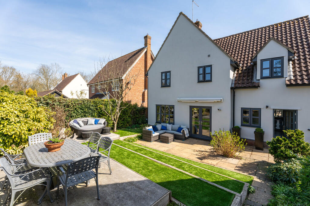 The property is a 4 bedroom detached house located in Sturmer, Essex. The location benefits from being within approximately 2km of several schools which received a ‘Good’ Ofsted rating. The property itself appears to be in excellent condition, having undergone modernisation whilst retaining some traditional character. The images show a well-maintained interior and exterior, including a landscaped garden with patio areas. There is also a hot tub. The plot size is relatively small at 660 sqft.
