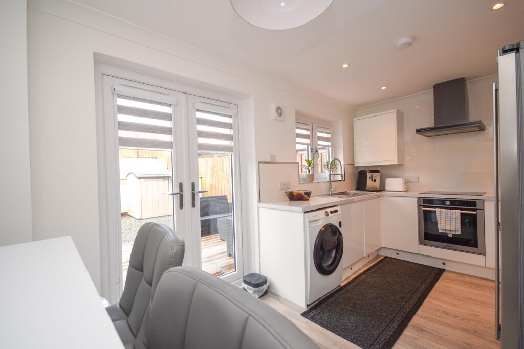 This property is a 3 bedroom semi-detached house located in Motherwell, North Lanarkshire. Based on the images provided, the property appears to be in excellent condition and has been recently modernised. The kitchen and bathrooms have been updated to a high standard. The property benefits from a good sized rear garden with a decked area, perfect for entertaining. There are also a number of nearby train stations providing good transport links. While there is no information on local schools, the average house price on Taylor Avenue is significantly higher than the list price of this property, suggesting it could represent good value for money. However, the lack of square footage information prevents a definitive conclusion on price per square foot.
