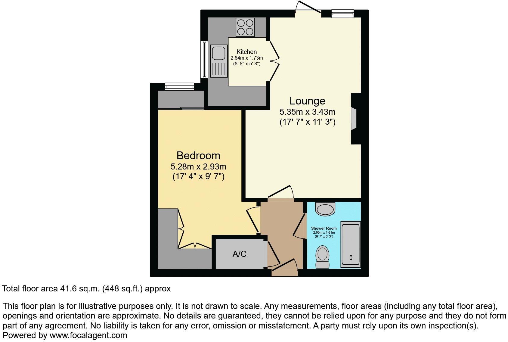 The property is an apartment located in Tamworth, Staffordshire. It has one bedroom and one bathroom, with a square footage of 447.78.
