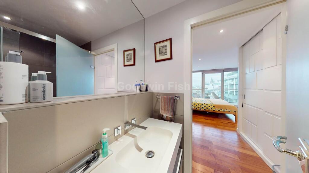 EWS1 form with B1 rating - Prime city centre development - Exquisite corner apartment - Est. 1227 sqft - 14th floor - Wrap around balcony with river views - Two double bedrooms with fitted wardrobes - Two bathrooms - Kitchen by Poggenpohl - Underground car parking - Vacant possession - No chain