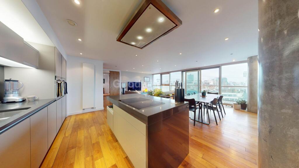 This property is a modern two-bedroom, two-bathroom apartment located in Salford, England. The apartment is in excellent condition and boasts a modern design with high-end finishes. The open-plan living area is spacious and bright, with floor-to-ceiling windows offering stunning city views. The kitchen is well-equipped with modern appliances and ample counter space. The bedrooms are also spacious and well-lit, each with its own en-suite bathroom. The property also includes a private balcony, providing additional outdoor space. The location is excellent, situated close to Salford Central train station and several other transportation links, as well as a number of local amenities. There are also several schools nearby. The property is listed at £475,000, which is slightly above the average price for the area but below the average price for similar properties in the area. The price per square foot is also slightly above average. Overall, this property is an excellent choice for those seeking a modern, well-maintained apartment in a convenient and desirable location.