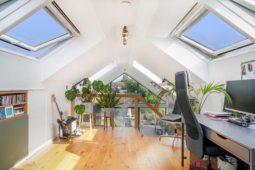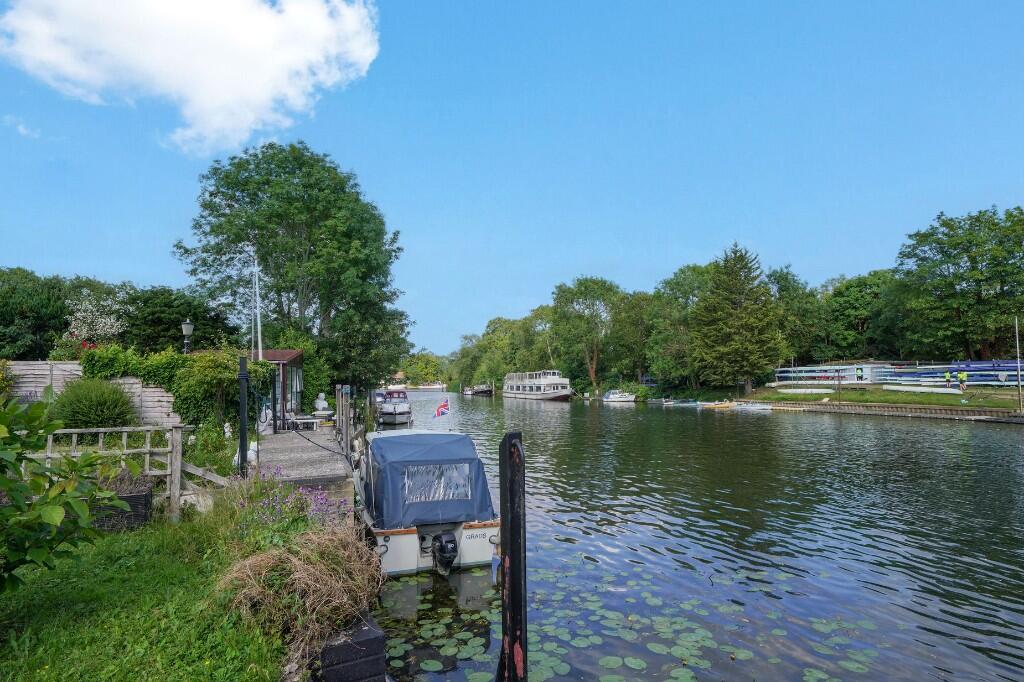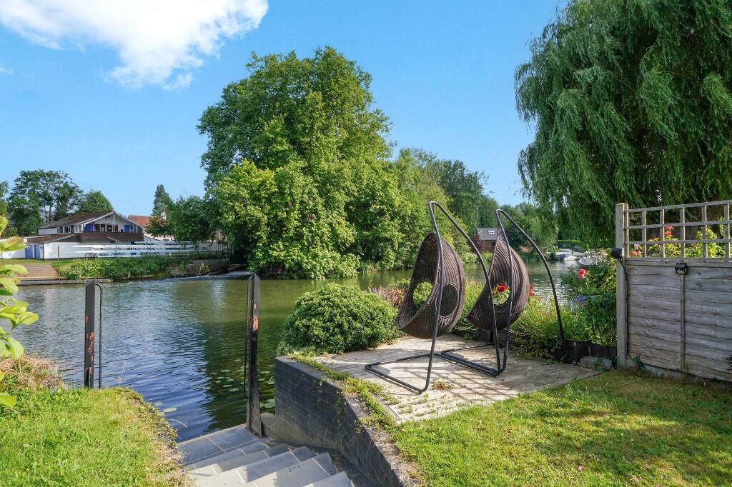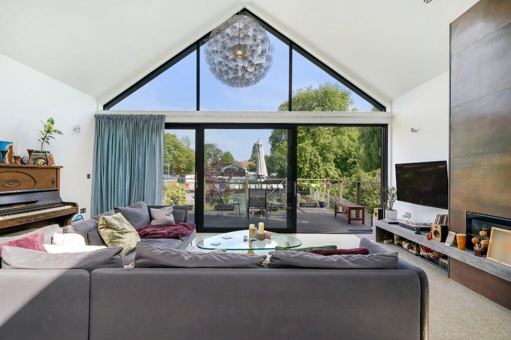 This fabulous, detached riverside property has been individually designed to create a wonderfully light and spacious 3-bedroom detached home and is located on a private Island in the middle of the river Thames betwixt the Shepperton and Weybridge bank. Accessed via a private footbridge the property
