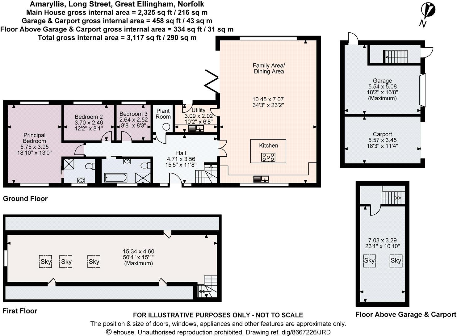 This is a modern detached property located in the village of Great Ellingham, Norfolk. The house offers three bedrooms and two bathrooms, with a total living space of 2,196.98 sqft. The property is in excellent condition, featuring modern fixtures and fittings throughout. It benefits from a well-maintained garden and ample parking space. The location offers a balance between rural living and accessibility to nearby towns, with Attleborough providing essential amenities and transport links. The price is slightly above the average for the area, reflecting the property’s excellent condition and modern features. The property includes a garage and patio area.