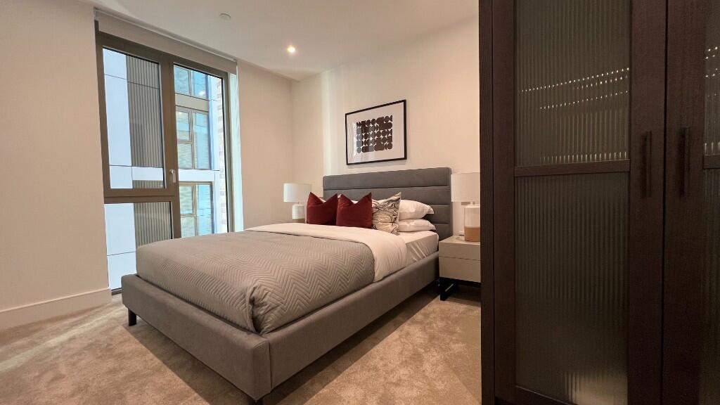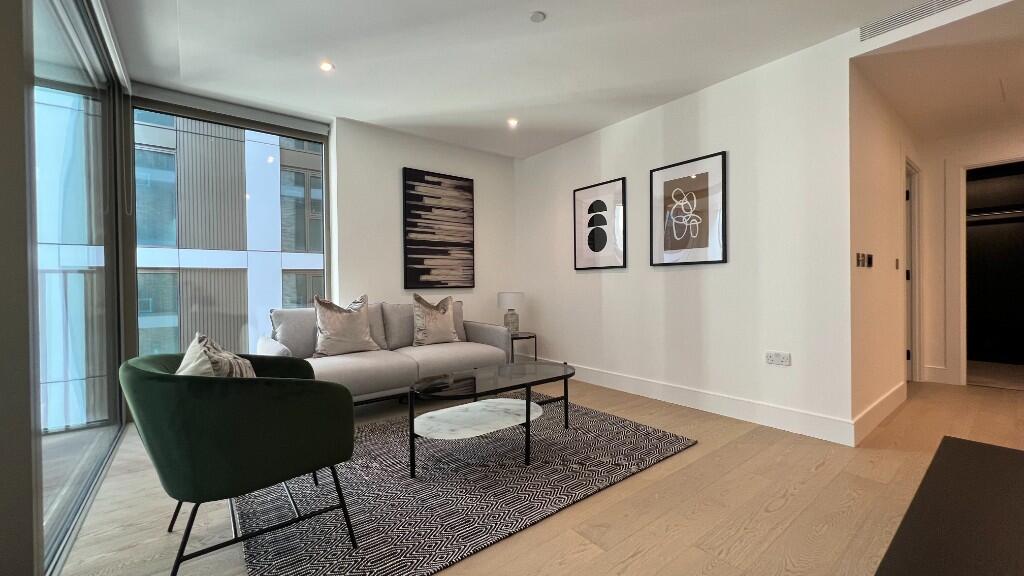Modern 2-bed, 2-bath flat in Salisbury House, Prince of Wales Drive, SW11. Features open-plan living, stylish kitchen, balcony, en-suite, and luxury finish. Access to concierge, gym, pool & rooftop terrace. Moments from Battersea Park & transport.