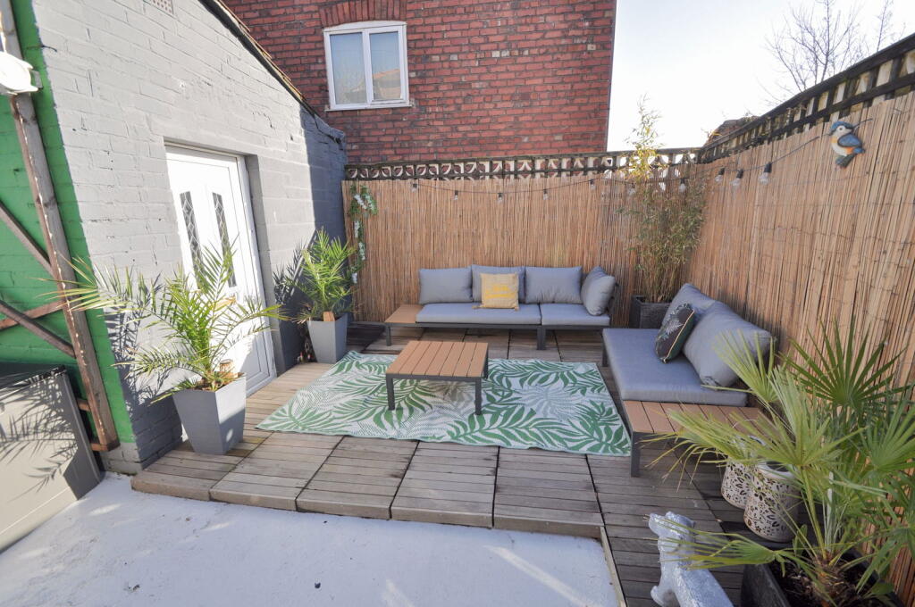 The property appears to be in good condition based on the provided photographs. The interior has been recently decorated and modernised, with a new kitchen and flooring. There is also a well-maintained garden to the rear of the property.