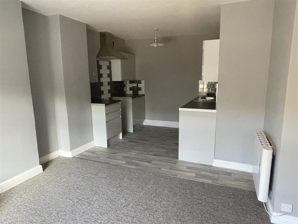 Refurbished first floor apartment in town centre position and comprising of open plan L shaped kitchen/lounge/diner with oven and hob, double bedroom and shower room. The property is available from End of November on a long term basis. Council Tax Band A. Energy Rating D.