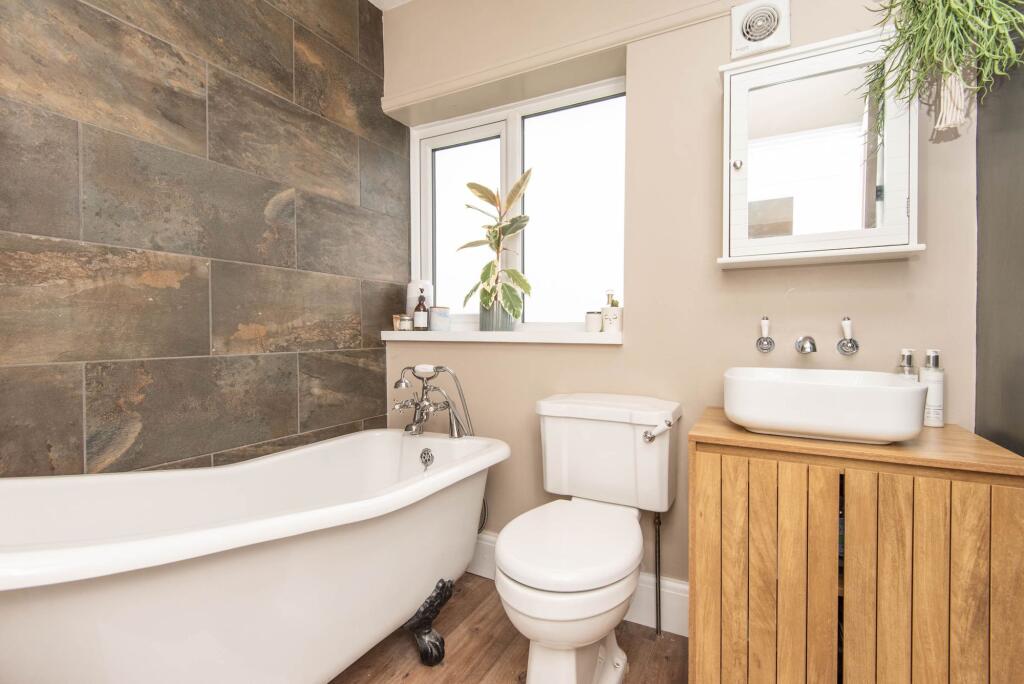 This three-bedroom semi-detached house is located in the Moor area of Chesterfield, Derbyshire. The property appears to be in excellent condition, having undergone recent renovations or modernisation as evidenced by the high-quality finishes and modern fixtures shown in the photographs. The house benefits from a well-maintained garden, adding to its appeal. While the square footage is not provided, the list price of £300,000 is slightly above the average price of £270,594 for the area, but considering the apparent high-quality condition and the desirable location, it may represent reasonable value. The nearby schools are rated as “Good” or “Outstanding”, and Chesterfield train station is within a reasonable distance. The property is well-presented and appears to be a desirable family home.