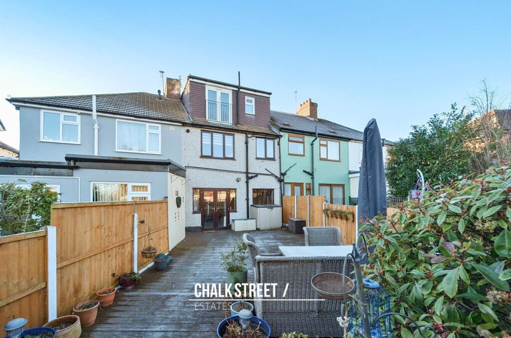 This is a four-bedroom terraced house in Hornchurch, Greater London. The property benefits from its location, being close to schools, transportation, and local amenities. The house appears to be in good condition, with a modern kitchen and bathrooms. It also features a good-sized garden with a decked area. The asking price of £550,000 seems reasonable for the area, but it’s important to consider the lack of square footage information when assessing its value.